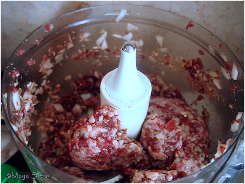 הארוחה שהכנתי הפעם כללה עוף אחד וקילו וחצי של תערובת קבב (המתכון בהמשך) , שהחלטתי להפוך למעין "קלופס" - קציצת ענק בסגנון מזרח אירופאי, כדי שתתאים לזמן הממושך יחסית של הבישול של העוף. התוספת הוכנסה גם היא לגריל דום - תפוחי אדמה ובטטות. ובמילים אחרות - כל הארוחה בבת אחת...